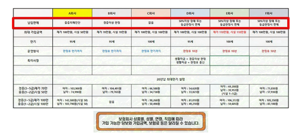 안녕하세요~! 컴아웃보험 홍시은입니다. 오늘은 주택보험을 찾는 고객님들께 도움이 될 수 있는 정보를 전해드리겠습니다! 각 회사를 비교해보고 싶습니다. 주택보험에 대해 알아보신 분들이 많으실 텐데요, 주택보험에 대한 정의나 설명은 생략하겠습니다! 그럼 어느 것? 그 회사가 싸고 좋은지 기본적인 것만 알려드릴게요! 주택보험을 취급하는 회사가 많기 때문에 어느 회사가 저렴하고 조건이 좋은지 궁금하실 것입니다. 주택보험 중 가장 많은 성과를 내고 있는 3개 회사를 살펴보겠습니다. 비교해 봅시다. 고객이 가장 선호하는 조건인 대금지급 면제 대상 기업을 집중적으로 살펴봤습니다. 주택급여 50만원, 시설급여 50만원, 30년 납입, 만기 95세로 모든 회사에 동일하게 설정했습니다. 우선 A회사입니다.